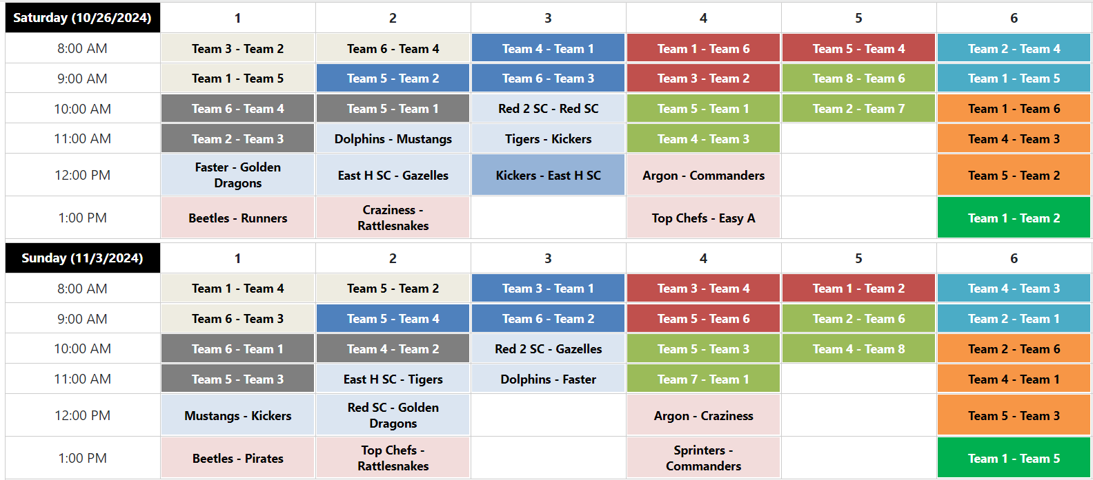 Note that our built-in error checking will not allow teams or fields to be double-booked.
