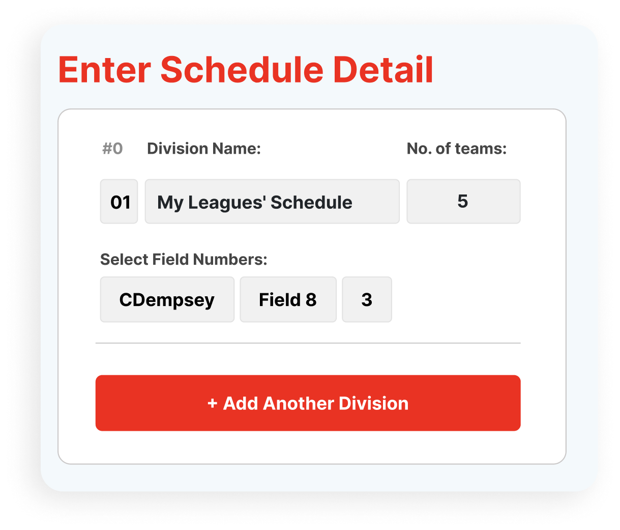 Our generator allows you to customize your schedules to fit your specific needs. Enter the schedule name, set the number of teams and field names, and easily add another division if needed. With our user-friendly interface, making changes and updates is a breeze.